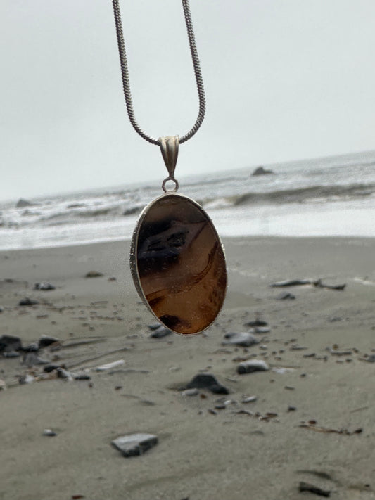 Multi-colored Yellowstone River Agate Pendant, hand made, sterling silver