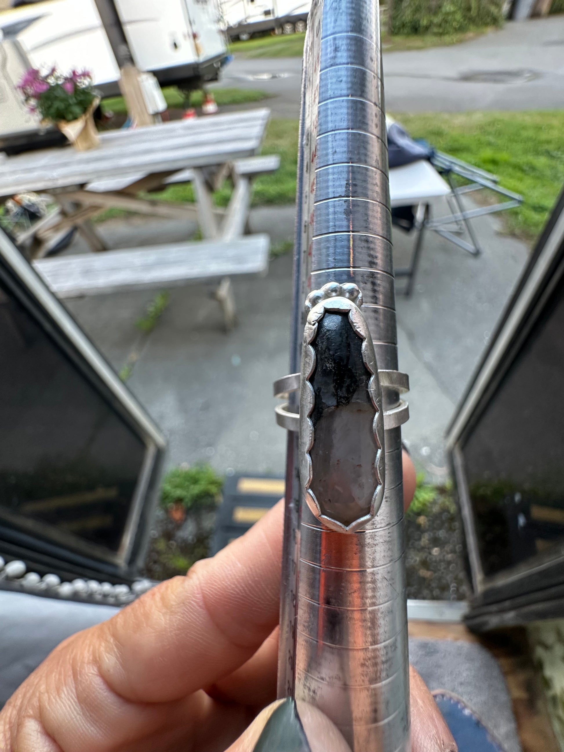 Hand made with a stone from the Yellowstone river in Montana. Hand picked, cabbed, and set.