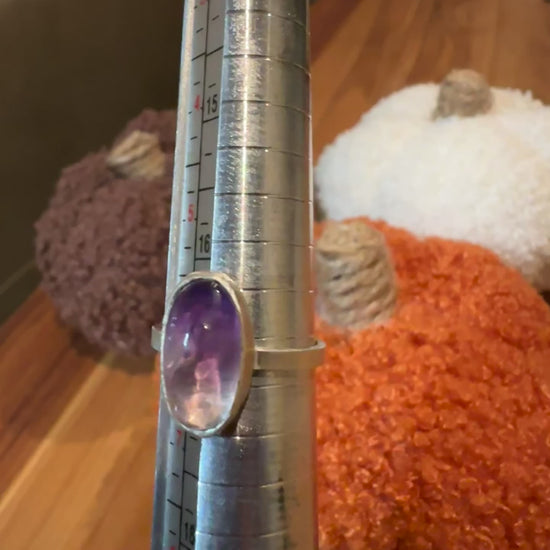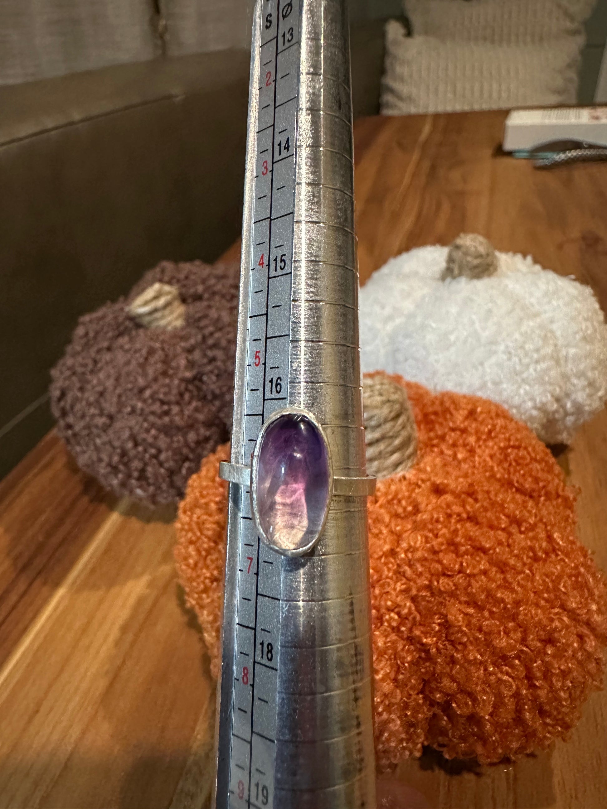 Clear Amethyst multicolored, size 6.5, hand made, sterling silver