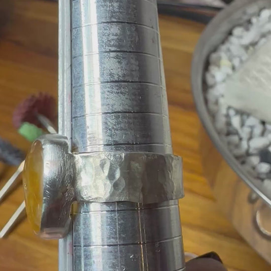 Druzy Yellow Yellowstone River Agate cabochon ring , size 9, hand made, sterling silver