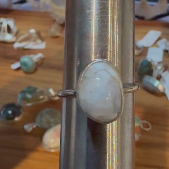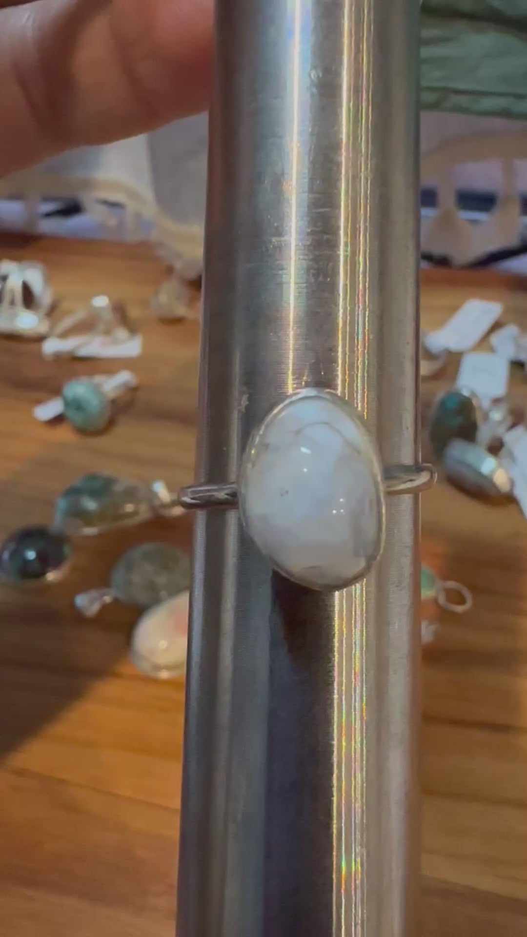 River Agate cabochon ring , size 8, hand made, sterling silver