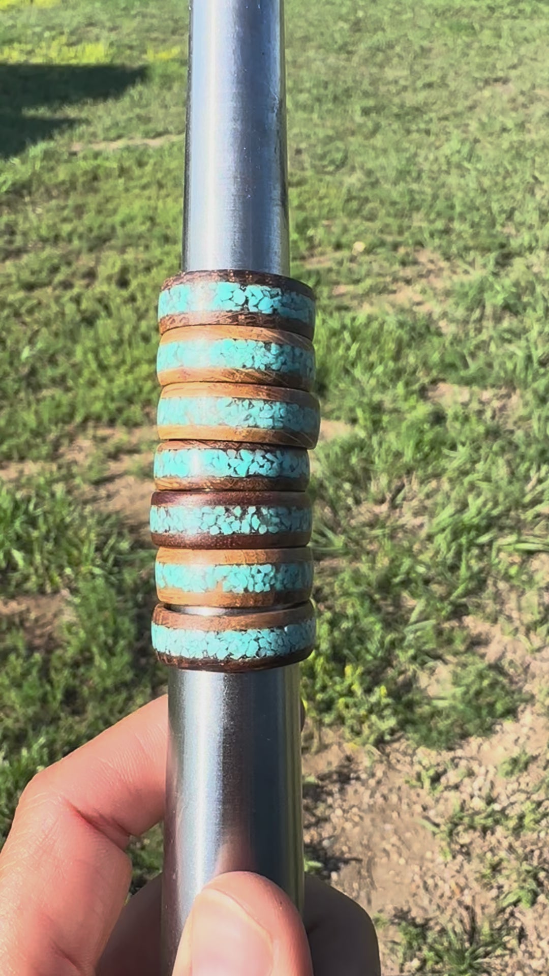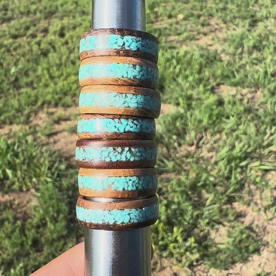 Wood, turquoise, and resin unisex ring