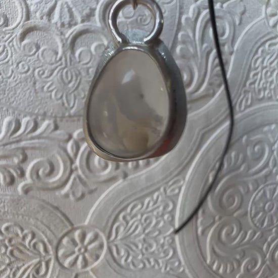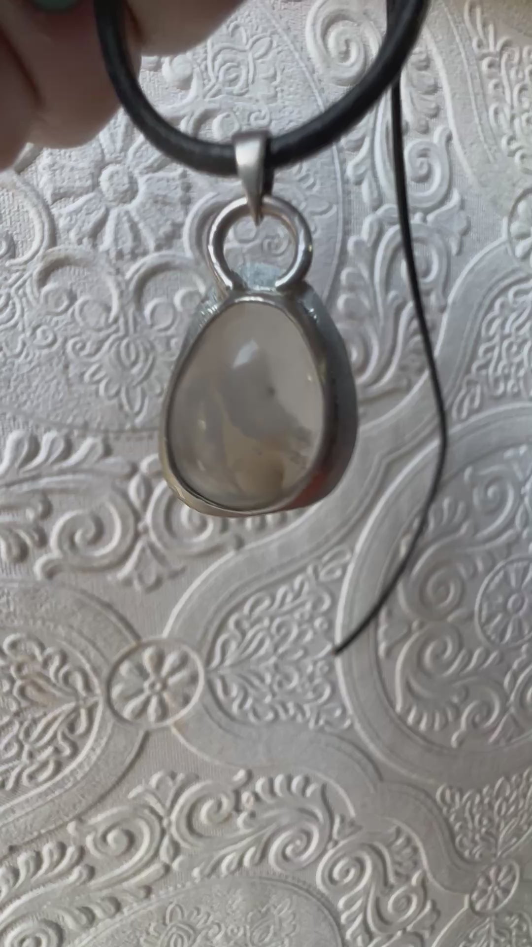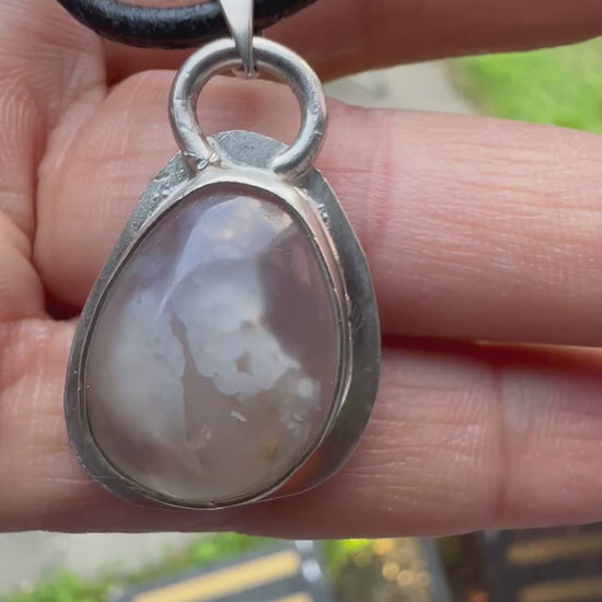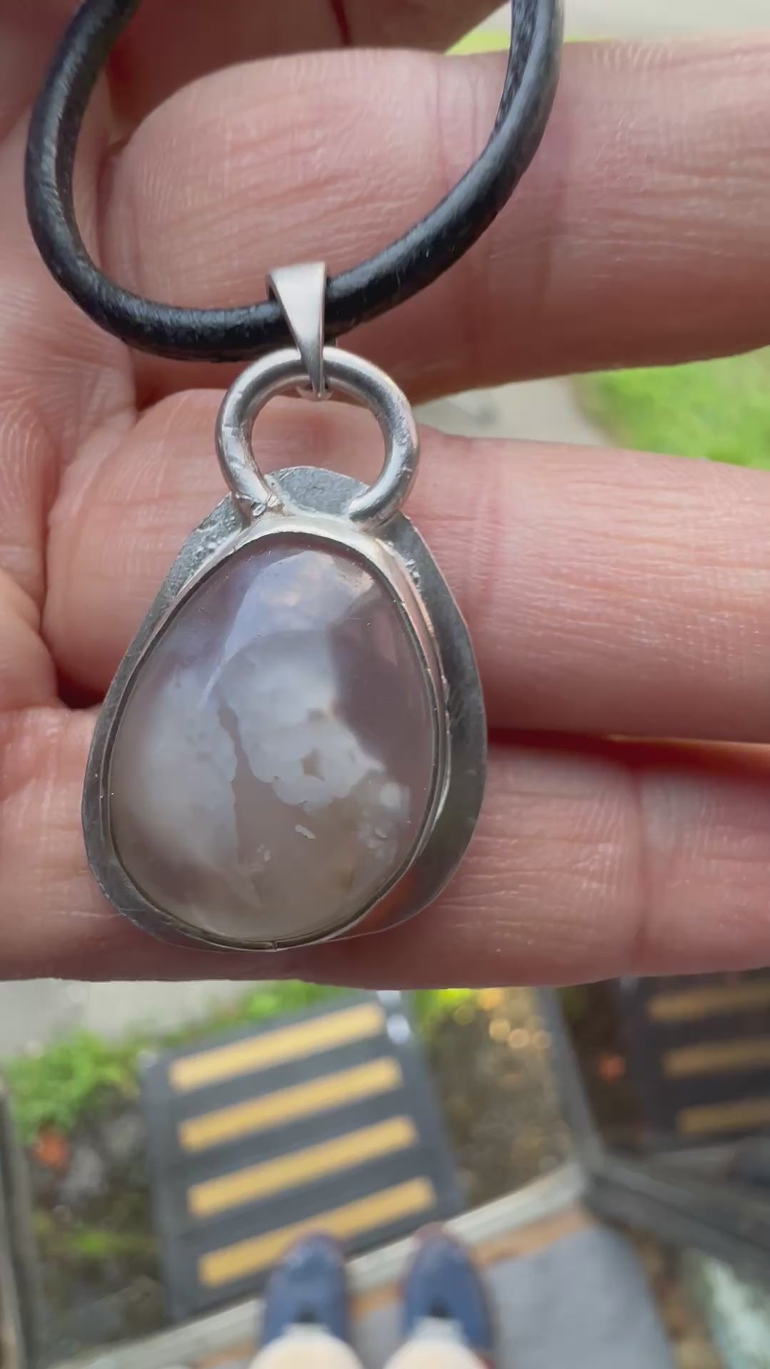 Fun Boho Pendant, Clear with white inclusions Yellowstone River Agate, hand made, sterling silver