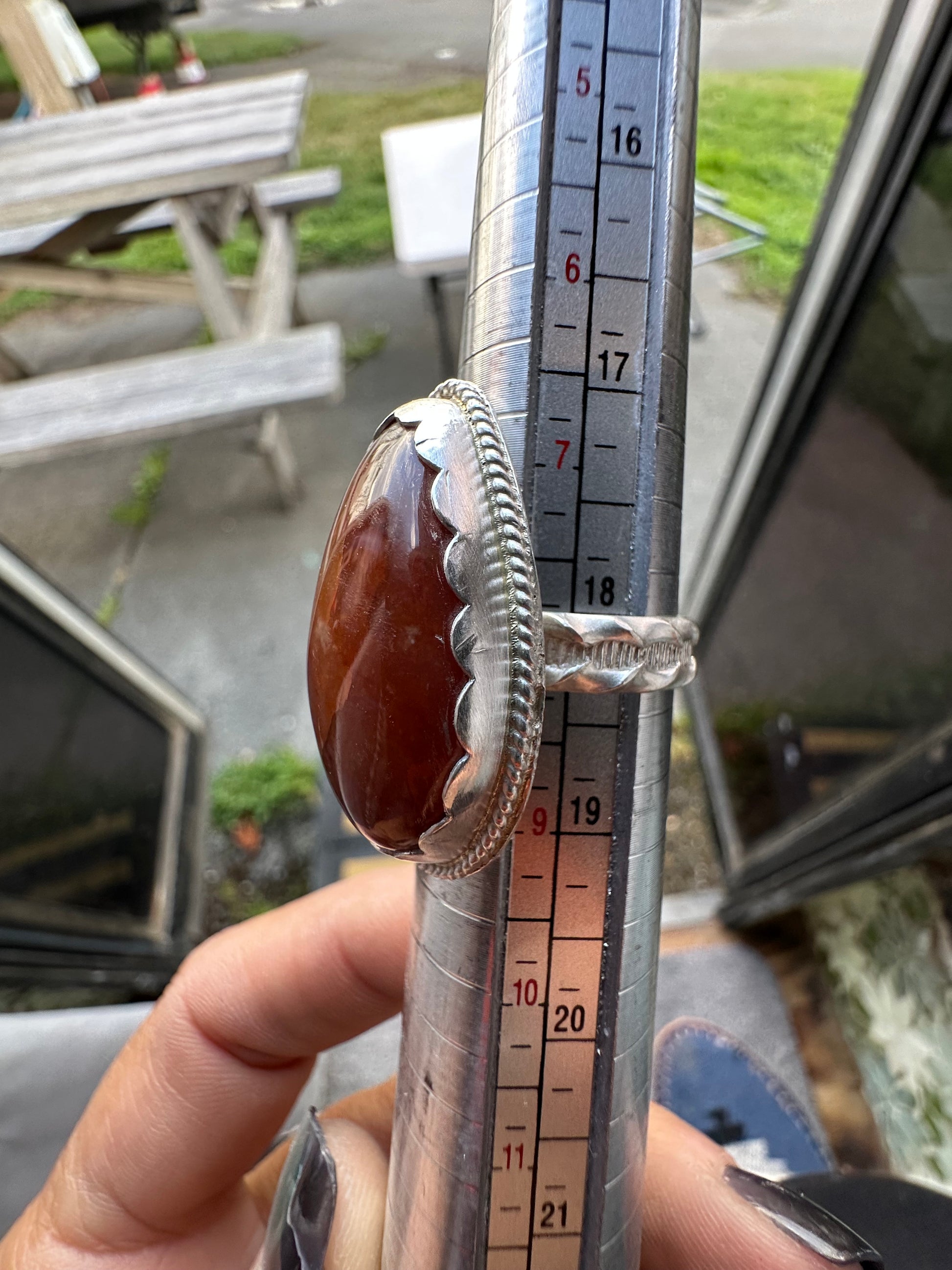 Fun Boho Amber Quartz cabochon ring, size 8, hand made, sterling silver