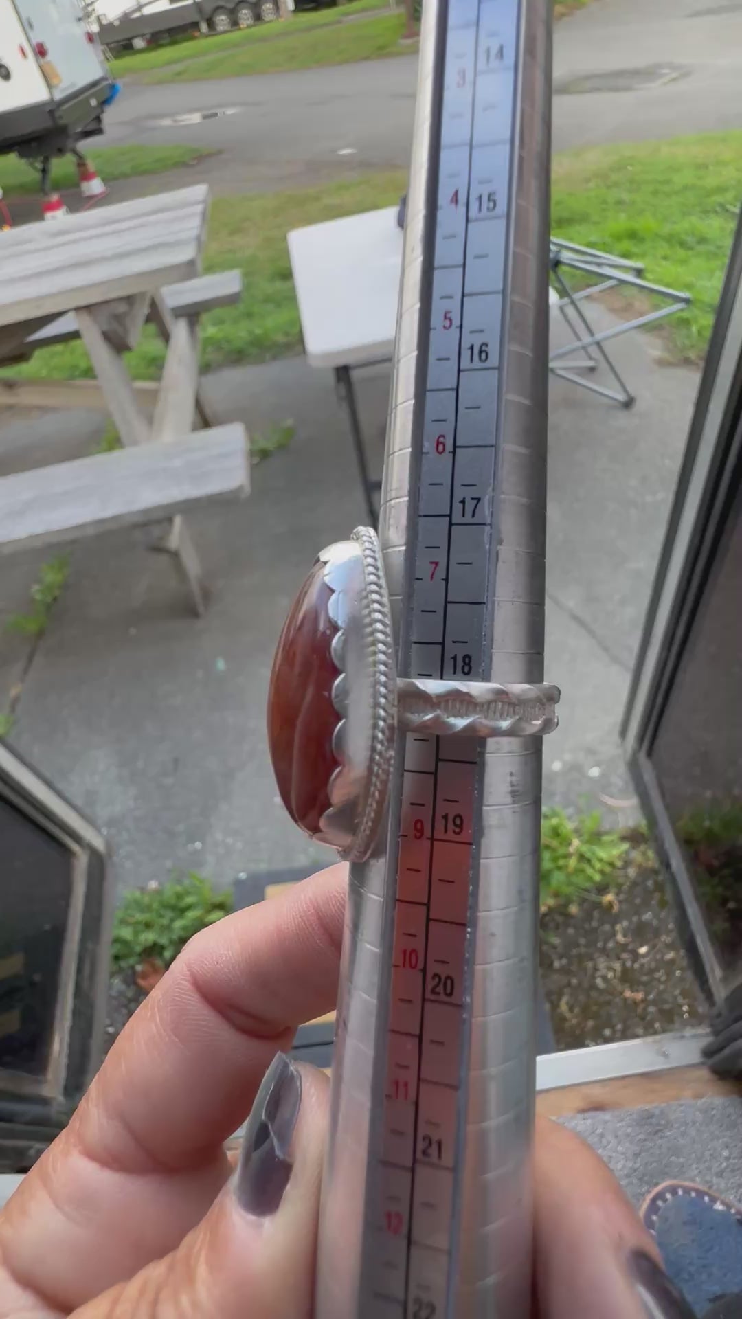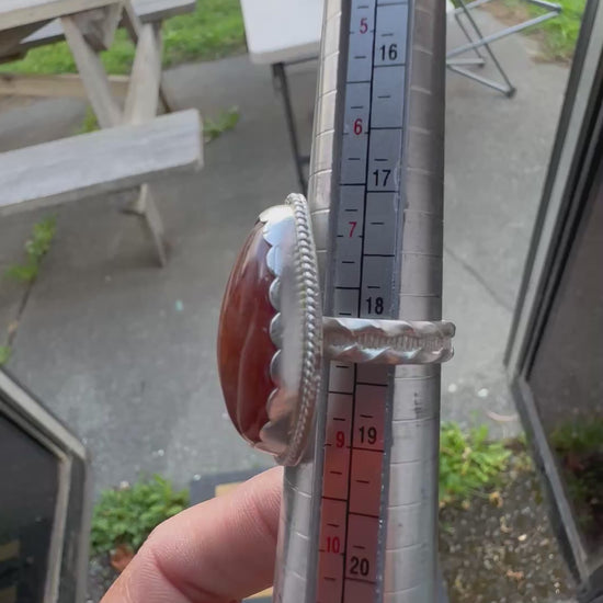Super fun and chunky Amber Quartz cabochon ring. Hand made with a an amber quartz stone from the Yellowstone. She's a real looker on your hand!