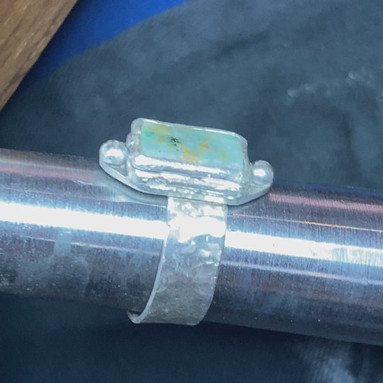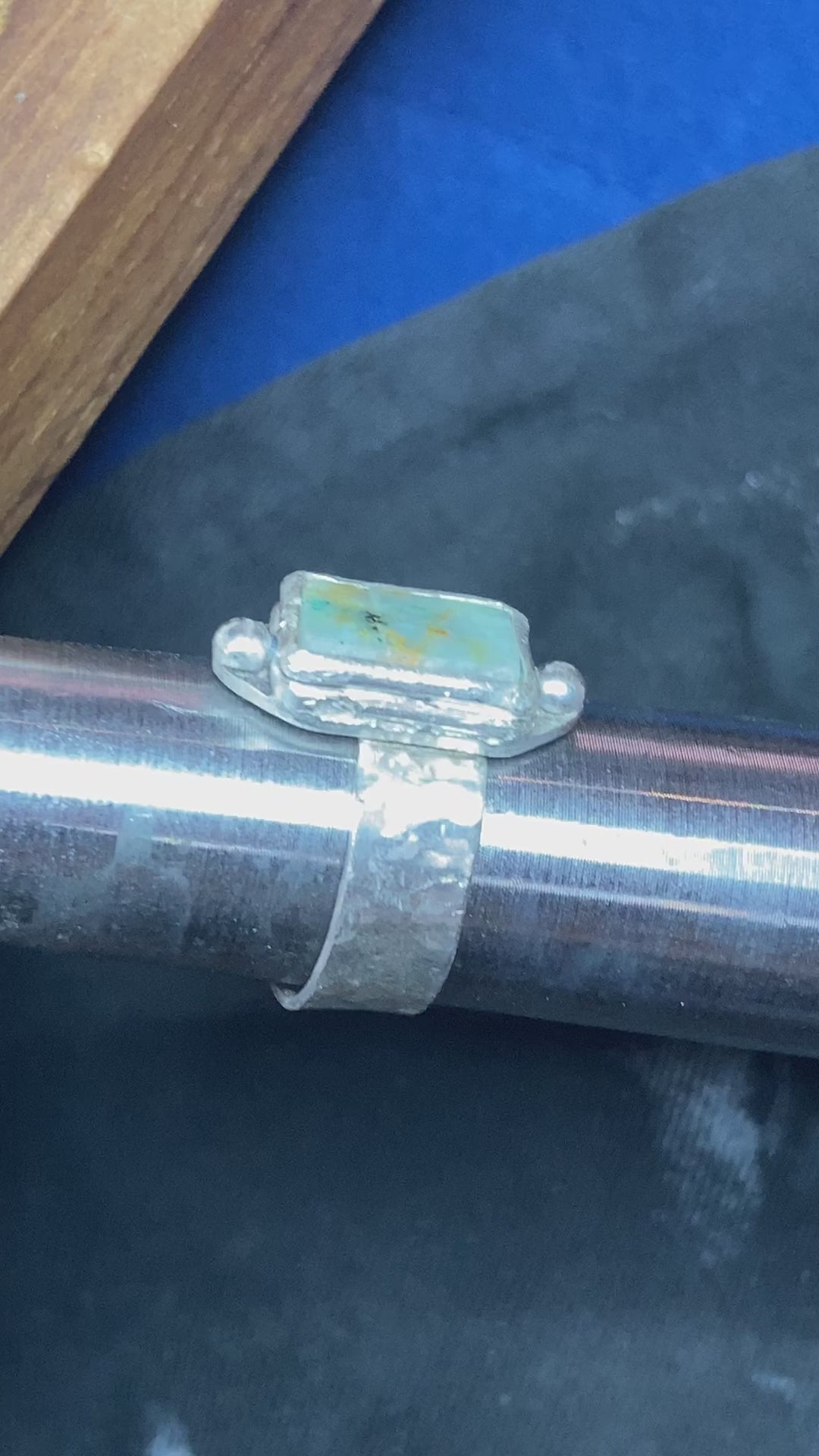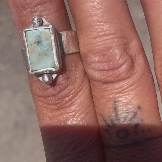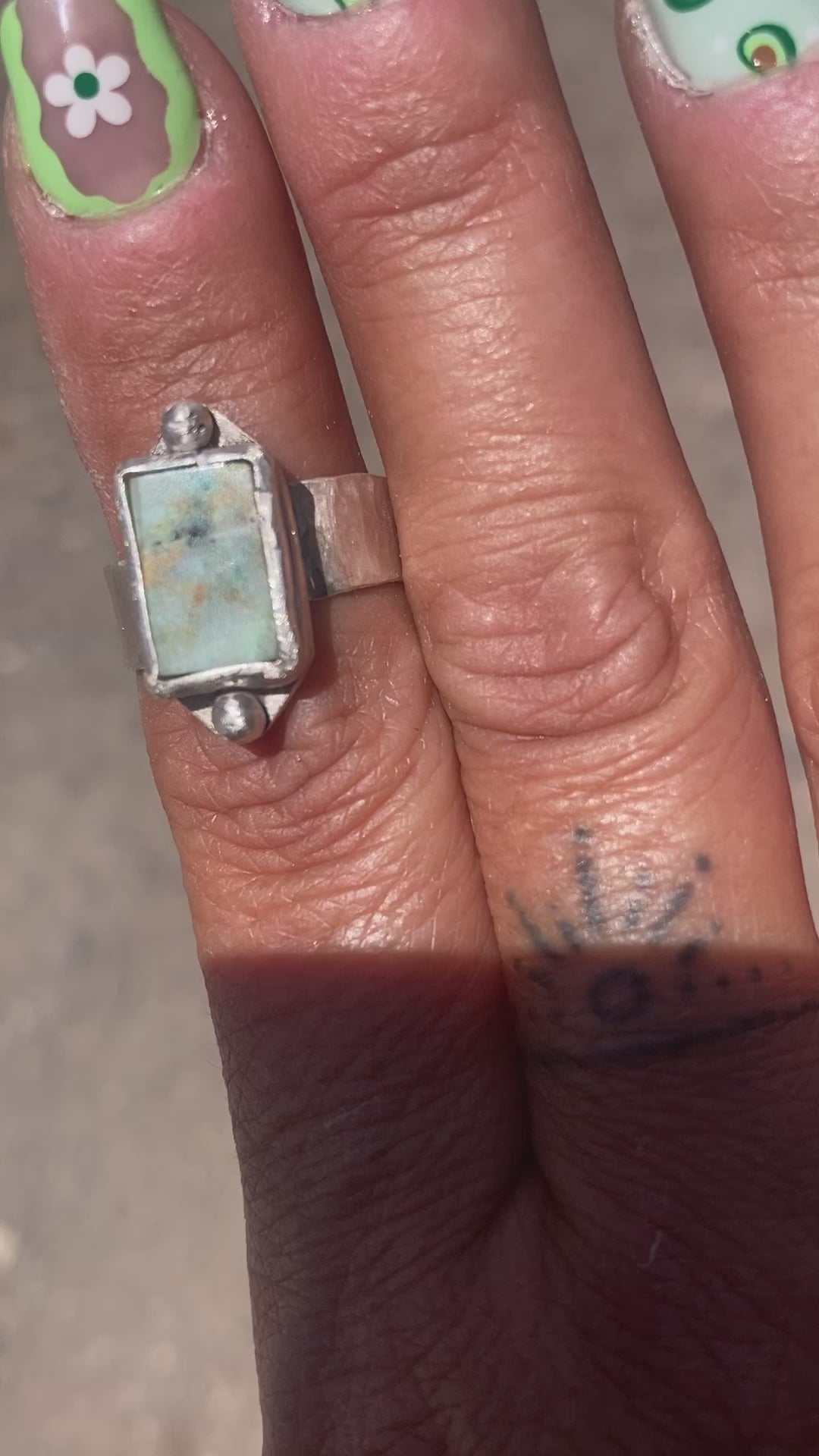 Fun Boho Rectangular Chrysocolla ring, chunky band, size 6.5, hand made, sterling silver