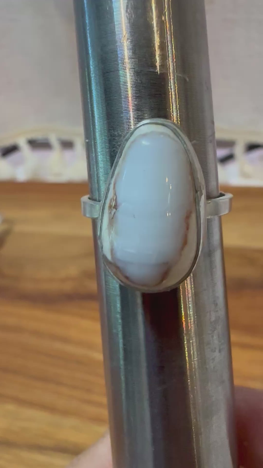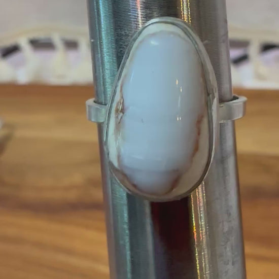 Idaho White Opal ring , size 7.5, hand made, sterling silver