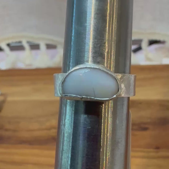 moon shaped idaho opal ring , size 7.5, hand made, sterling silver