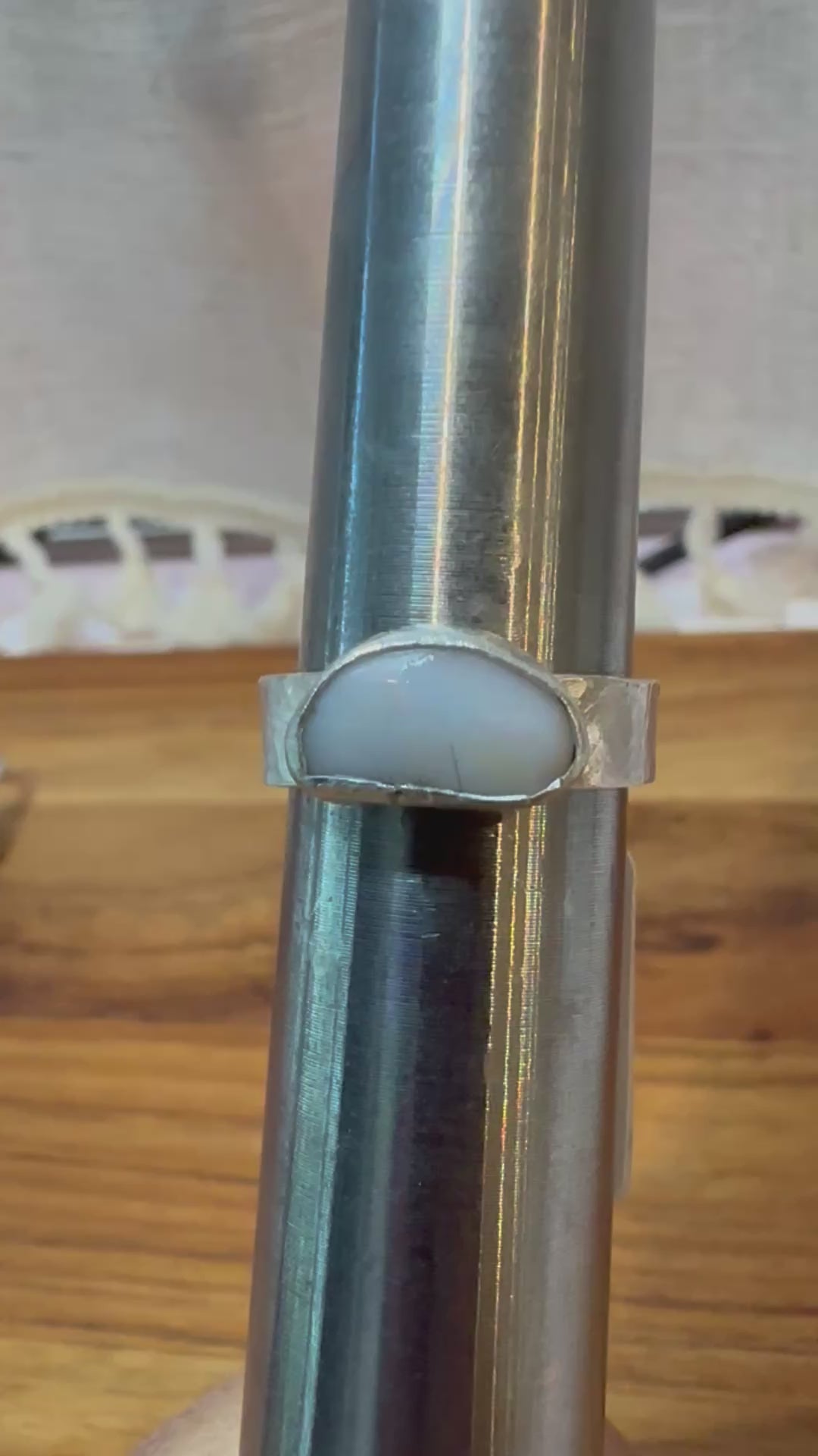 Hand made with a stone from Spencer Opal Mine in Spencer, Idaho. Hand picked and cabbed.