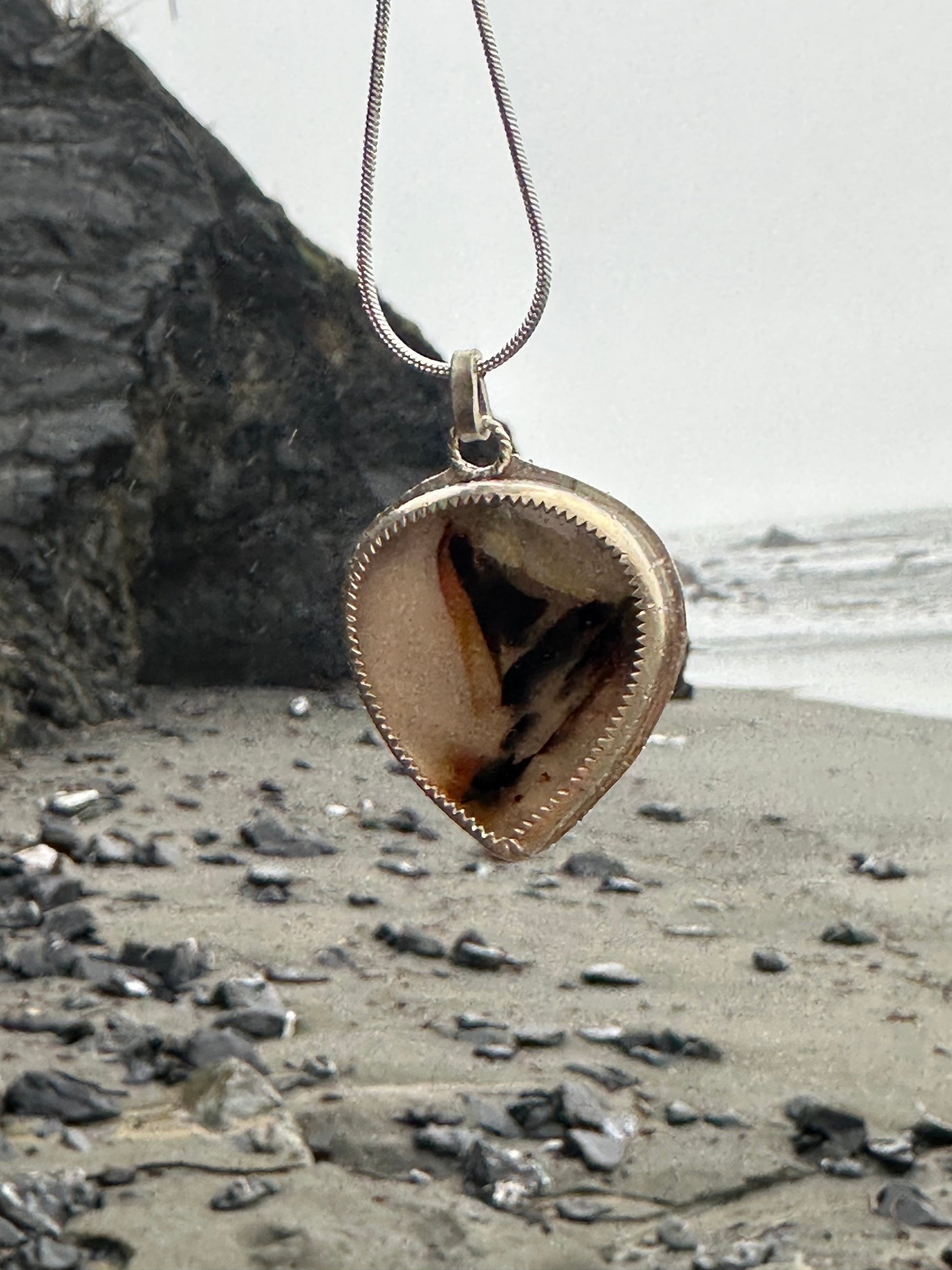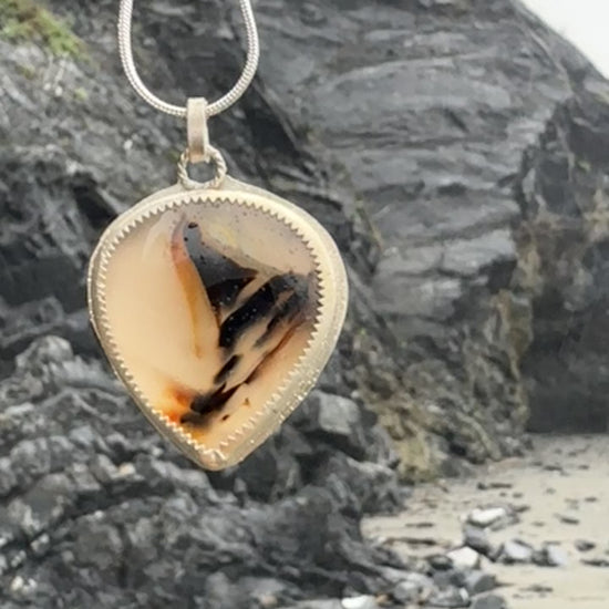 This stunning Yellowstone river, Montana agate was hand cut and set in sterling silver in my mobile metalsmith studio- a hand-built skoolie that allows me to live and work close to the landscapes where many of these stones are found.