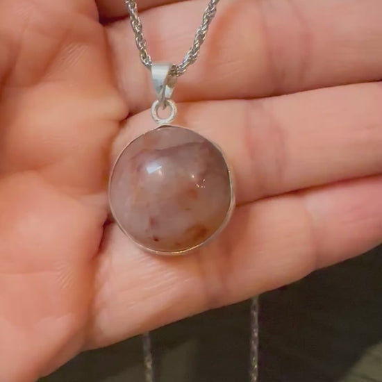Multicolored Rose Quartz Pendant, hand made, sterling silver