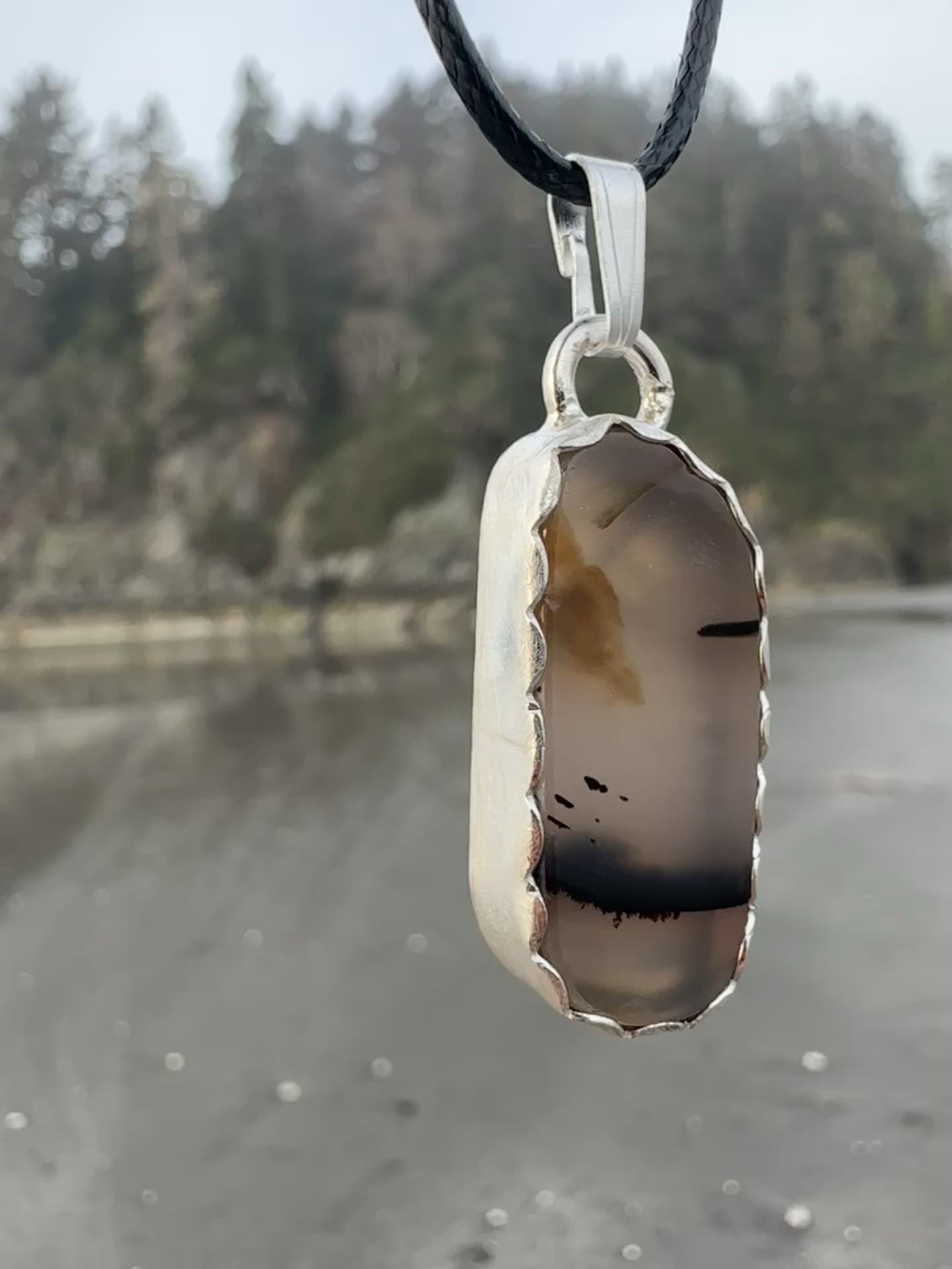 This beautiful multi colored agate from the Yellowstone river was hand cut and set in sterling silver in my mobile metalsmith studio- a hand-built skoolie that allows me to live and work close to the landscapes where many of these stones are found.