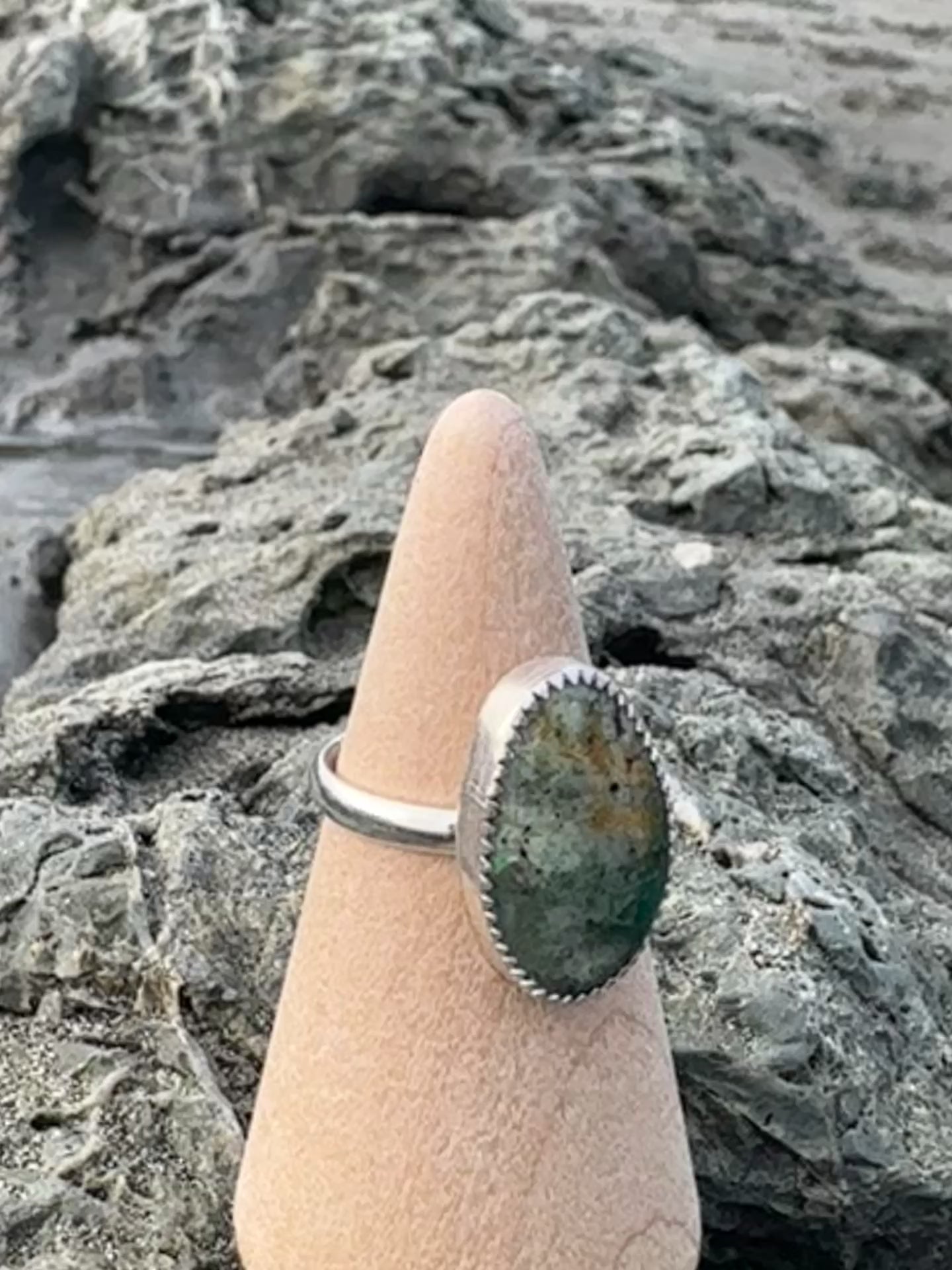 Serrated Bezel, Desert chrysocolla from Southern California, size 7
