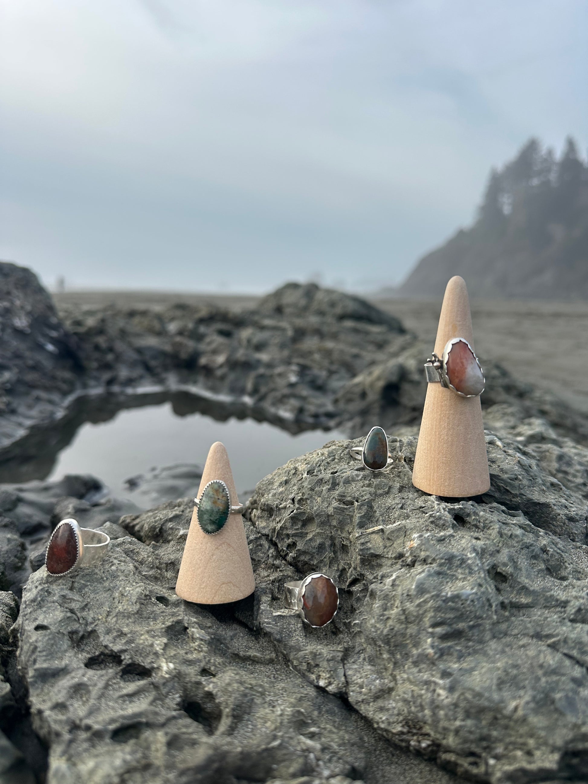 Picked, cabbed, polished and set in my mobile metalsmith studio- a self-built skoolie that allows me to live and work close to the landscapes where many of these stones are found.