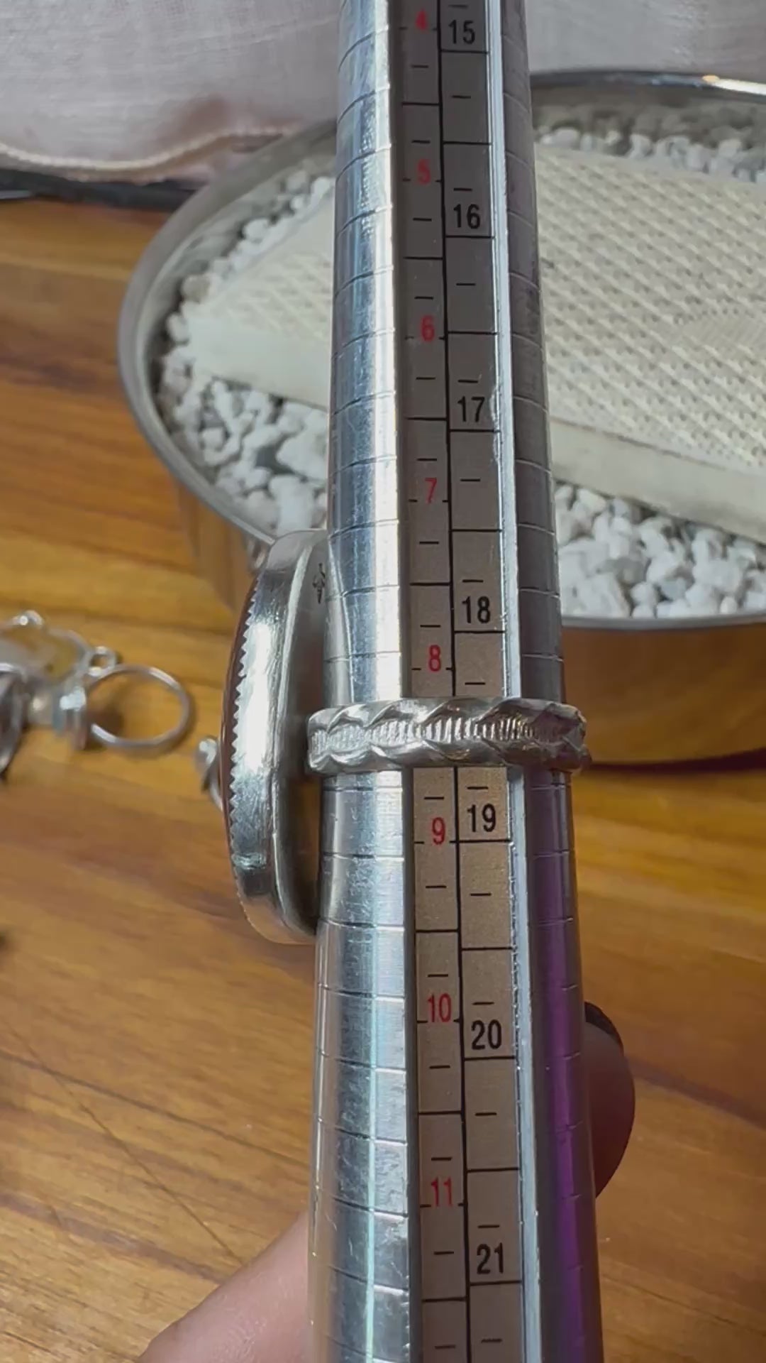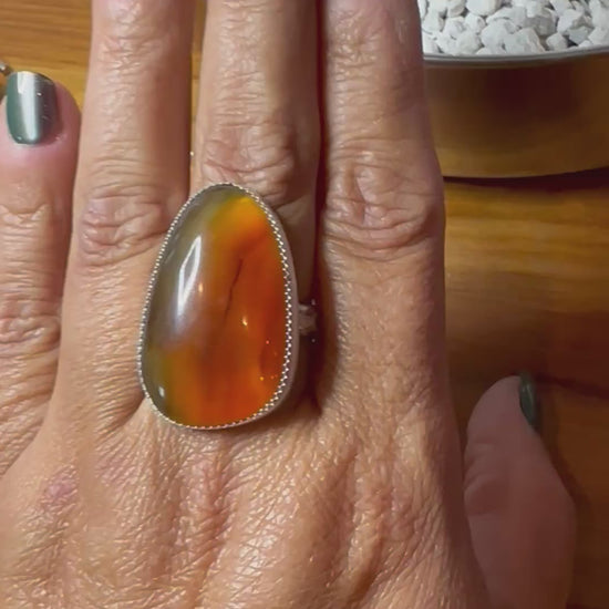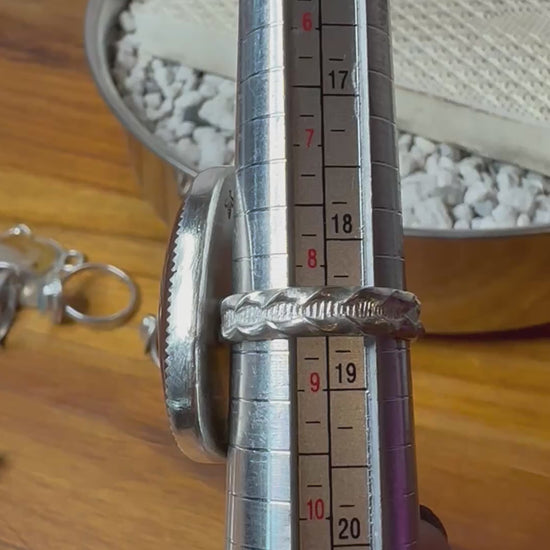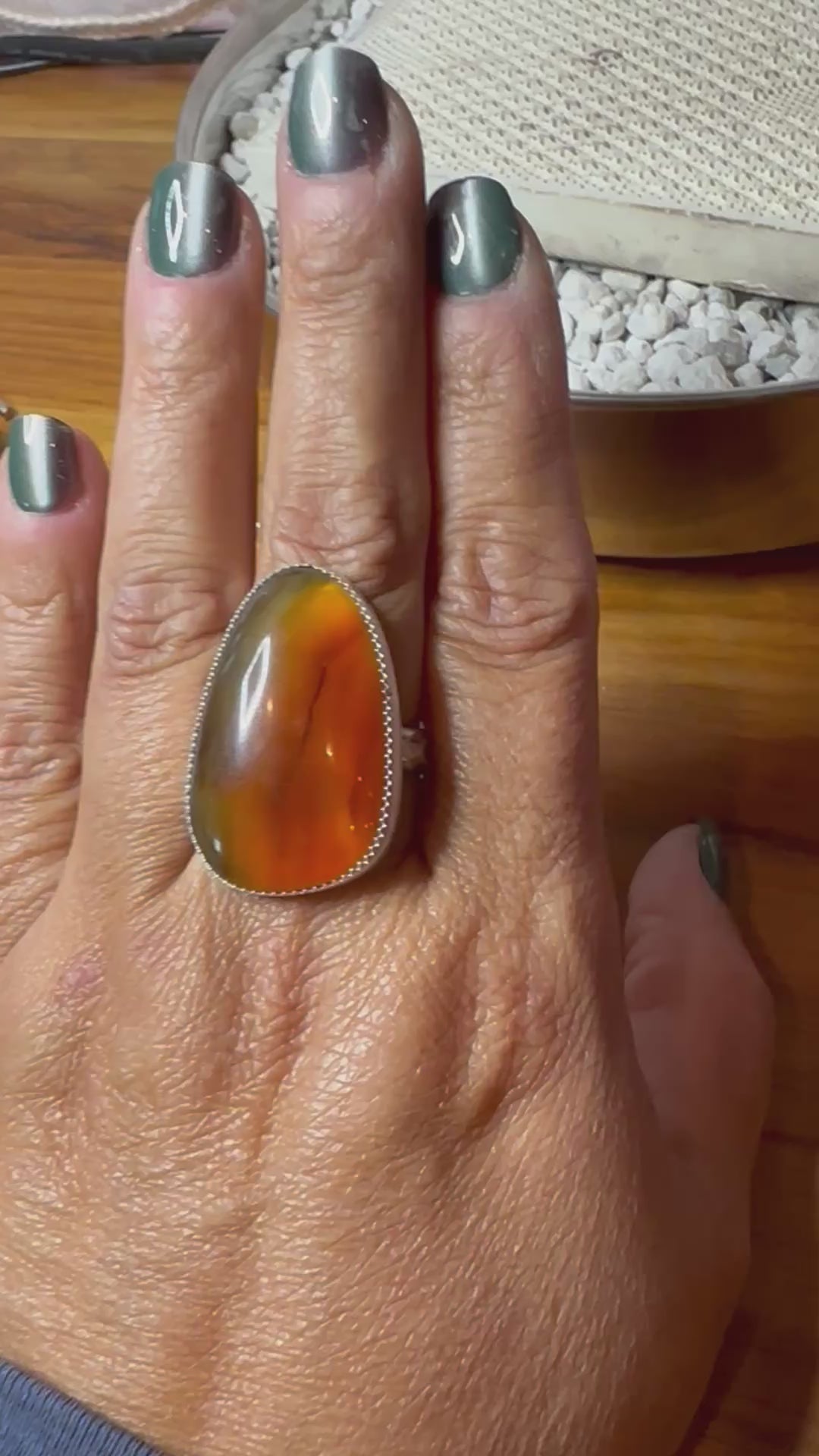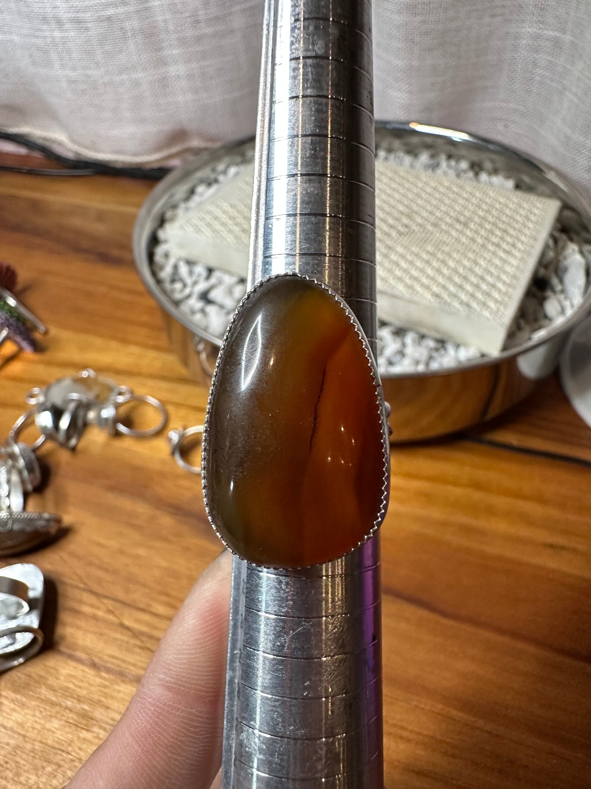 Striped Yellowstone River Agatized Wood cabochon ring , size 8.5, hand made, sterling silver