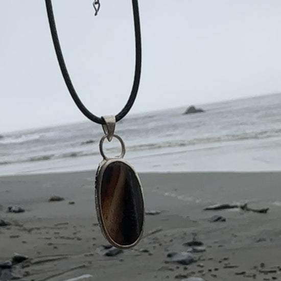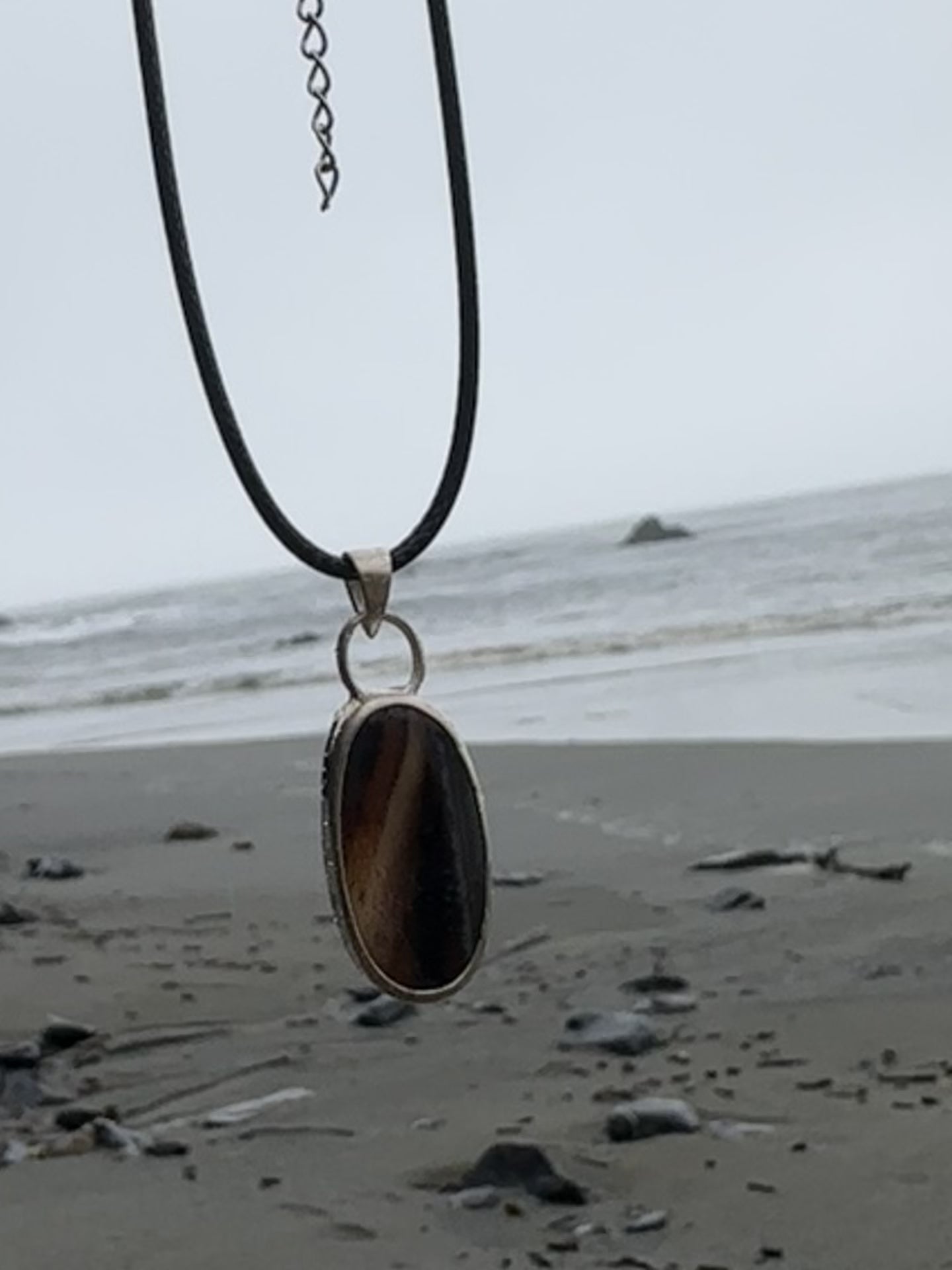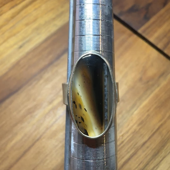 This stunning Yellowstone river, Montana agate was hand cut and set in sterling silver in my mobile metalsmith studio- a hand-built skoolie that allows me to live and work close to the landscapes where many of these stones are found.